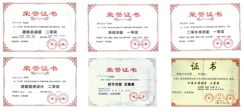 | 导线测量 | 罗磊、赵琳钰、贺祎侃、杜红雨 | 吴兆福、周志易、李晓莉 | 一等奖 | 2016 |
