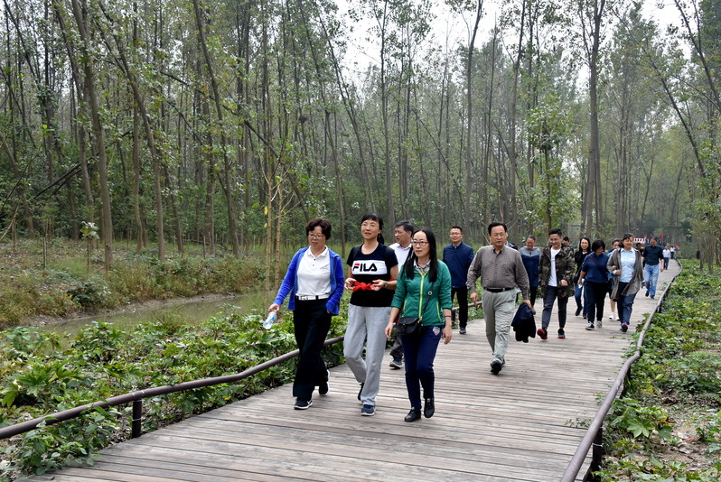 金秋时节,天高气爽,教师们成群结队游走在滨湖湿地公园,四周树木葱葱,水波荡漾,微风拂面,轻松自然,别是一番怡然自得的画面。合肥滨湖湿地森林公园位于合肥主城区东南,北依甲子河,南达环湖北路,西连巢湖南路,东临南淝河,十五里河南北贯穿。公园面积1072公顷,其中森林面积799公顷,水域面积263公顷,是安徽省内唯一万亩城市水网森林。一起游赏湿地公园,增加了教师之间的交流,促进团结,同时达到放松身心的效果。