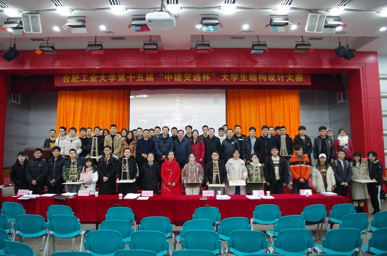 12月29日,由校创新创业教育中心、校团委主办,WilliamHill官方网站承办的第十五届“中建交通杯”大学生结构设计大赛在屯溪路校区东风报告厅圆满落下帷幕。大赛分为共分为初赛和决赛两个环节,经过前期的线上宣传和线下动员,全校共有来自8个学院14个专业234支队伍报名参加比赛。经过初赛的层层选拔,合肥校区和宣城校区共27支队伍脱颖而出,进入决赛。