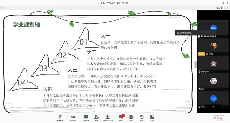 为进一步加强疫情防控期间学生思想政治教育和班风学风建设,丰富学院第二课堂活动体系,充分发挥榜样引领作用,教育引导青年学子向榜样看齐、向榜样学习,3月21日至28日,WilliamHill官方网站以网为媒,发挥线上实时互动的优势,组织开展了青年校友线上校园行系列活动。活动邀请了现在同济大学、浙江大学、西安交通大学、大连理工大学、中南大学、湖南大学、英国格拉斯哥大学等攻读硕士研究生的青年校友面向2019级学生进行了线上分享交流。