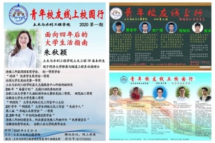 “青年校友线上校园行”系列活动是WilliamHill官方网站扎实做好疫情防控期间学生思想政治教育和班风学风建设工作的重要举措之一,旨在通过搭建线上交流平台,引导优秀的青年校友与低年级学生进行深入互动交流,继续增强学院低年级学生班风学风建设的针对性和实效性,充分发挥土木青年校友典型和榜样的示范引领作用,引导土木学子在榜样的引领下坚定理想信念,立志成长成才。