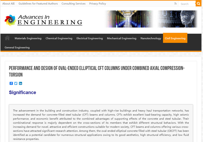 Advances in EngineeringAIE)报道原文链接:https://advanceseng.com/performance-design-oval-ended-elliptical-cft-columns-combined-axial-compression-torsion/