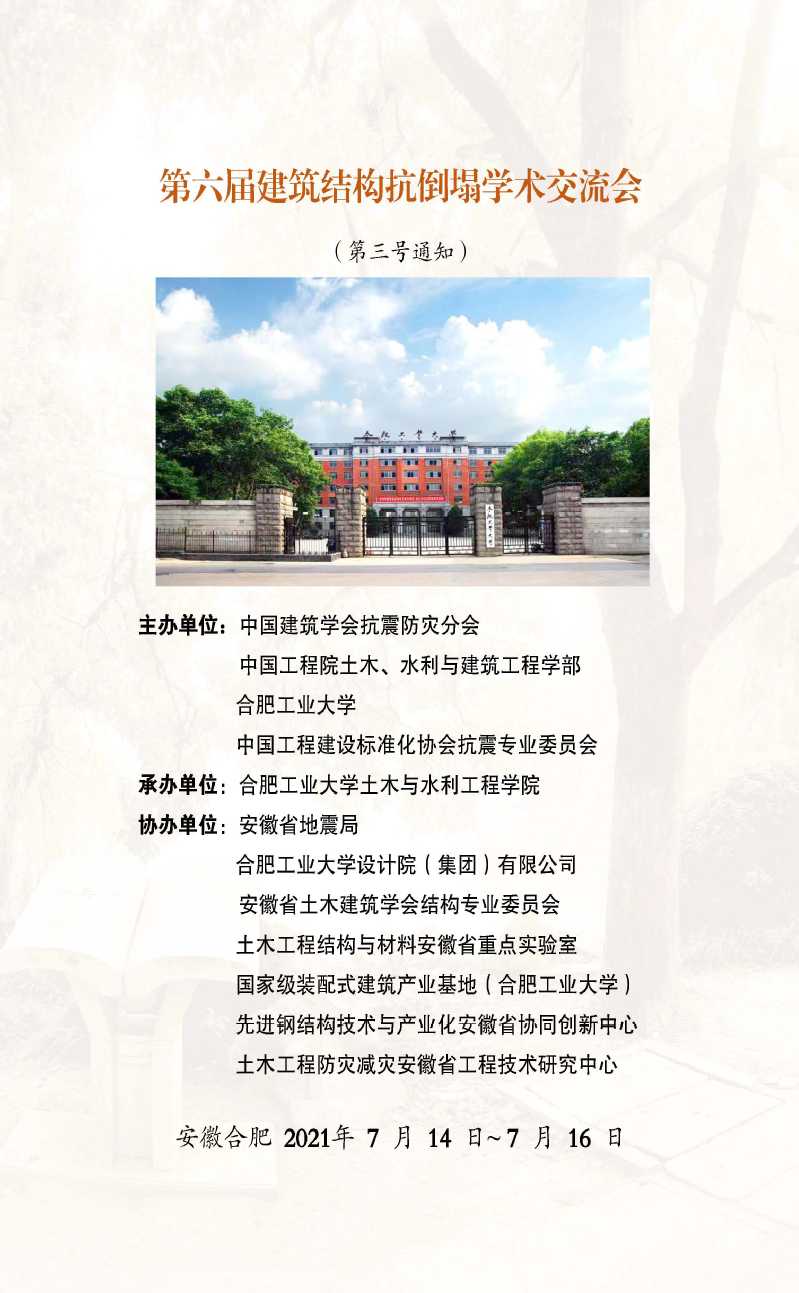 第六届建筑结构抗倒塌学术交流会(第三号通知)