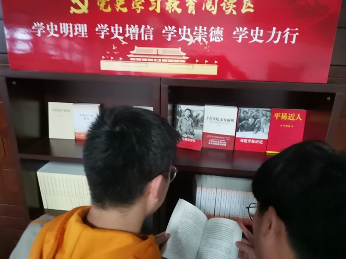 开展党史书籍阅览活动,党性修养有锻炼。为积极响应习近平总书记“爱读书、读好书、善读书”号召,4月11日,研究生第五党支部在依托学院“党史学习教育阅读区”的基础上开展党史书籍阅览活动。支部成员通过阅读《中国共产党简史》、《习近平的七年知青岁月》等书籍,深刻了解学习党史和党情,充电蓄能。支部成员张玉冰说,“学院建立的这个党史图书角,为我们党员开辟了一个实验室门口就能学习充电的地方,我们从中可以更加深刻的了解我们党的百年奋斗史,汲取革命先辈的力量。”