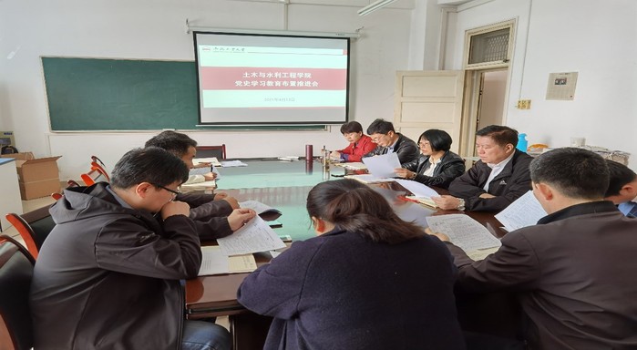 413日上午,在纬地楼501会议室,召开学院党史学习教育布置推进会。会议由院党委书记刘梅主持,教工、学生支部书记参加会议。