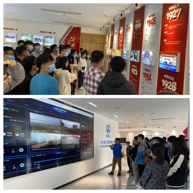 活动中,项目部党支部副书记韩铭莉首先带领全体学员参观学习了项目部《永远的开路先锋》主题党建工作展示墙,系统介绍了中铁建工集团在铁路建设方面取得的成绩以及新合肥西站项目部党建工作开展情况。此外,项目部工程师通过该项目沙盘向学员们演示了“智慧工地”系统,展示了项目工程视频简介和实施概况。随后,在项目负责人的带领下全体成员集中参观学习了施工现场,切实感受和认知项目一线情况,并就技术和专业学习等相关问题进行了交流与讨论。