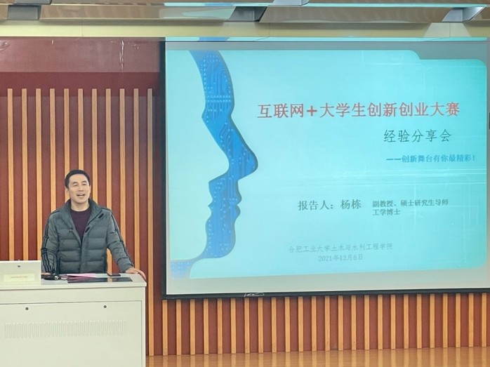 道桥地下系副教授杨栋主要介绍了“互联网+”的参赛项目准备、大赛的十大来源,分享了如何写项目计划书、项目展示和答辩以及如何准备投资人面谈等。