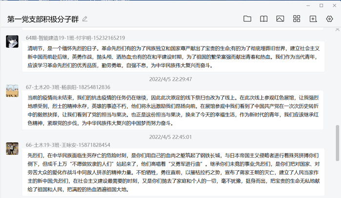 此次主题线上祭奠革命英雄活动,进一步激发了青年学子爱国主义情怀,激励学生党员铭记烈士的丰功伟绩,把缅怀之情化为学习动力,为祖国的新征程贡献自己的一份力量!