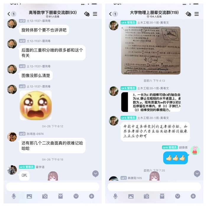 此次活动聚焦夯实专业基础,涉及高等数学A(下)、大学物理C、流体力学和材料力学四门课程。课程主讲老师由学院本科生各党支部选拔推荐的8名学习优异的学生党员担任。每周1次课程集中讲授,共持续6周,覆盖学院2020级和2021100余名学生。高年级党员通过授课讲解的方式帮扶低年级同学,帮助同学们找到正确的学习方法和技巧。同时,各门课程建立相应的线上指导帮扶群,针对课程大纲和重难点问题进行交流探讨、答疑解惑,实现线上线下联动。目前,430日和57日已连续开展两期集中授课,帮扶效果得到低年级同学一致好评。
