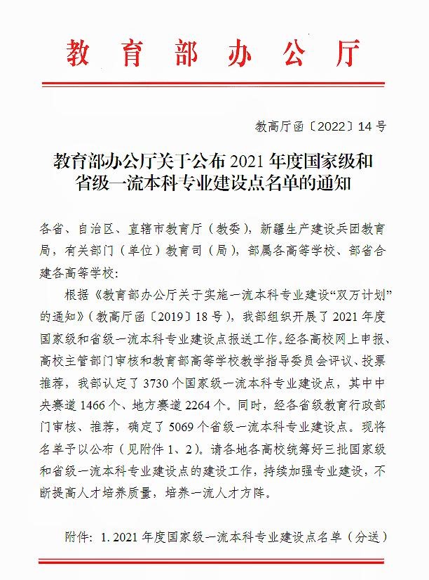 庆贺williamhill官网入选国家级一流本科专业建设点五个