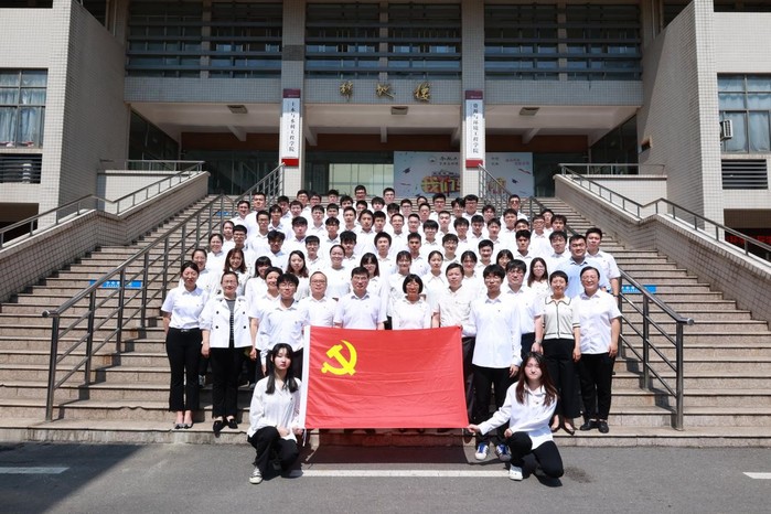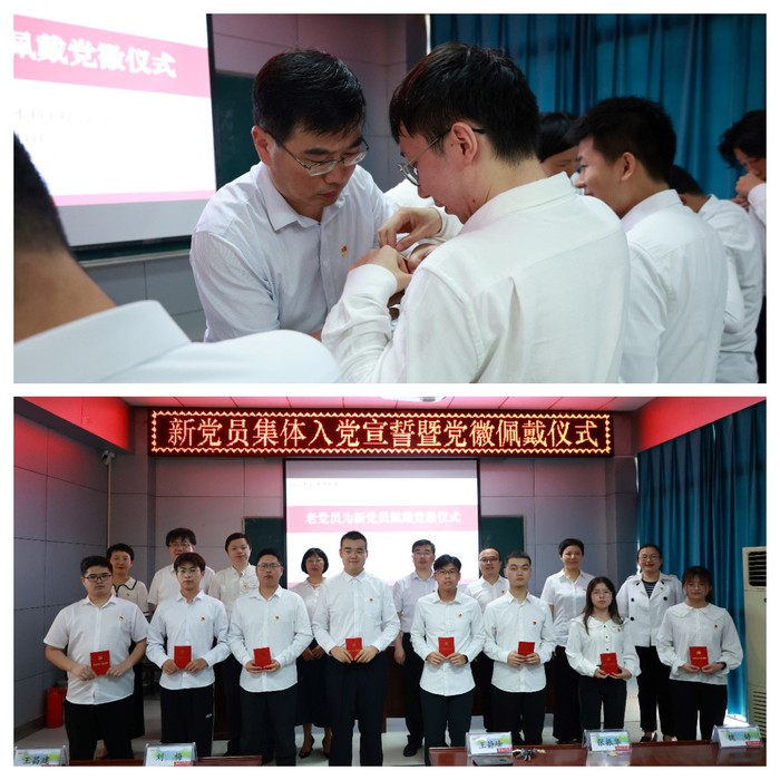 宣誓仪式在庄严的《国际歌》声中拉开序幕。66名新发展党员全体肃立,高举右拳,面向鲜艳的党旗庄严宣誓,表达了为共产主义事业奋斗终生的决心。学院团委书记李雪领誓,学院党委委员为新党员佩戴徽章,颁发党章。