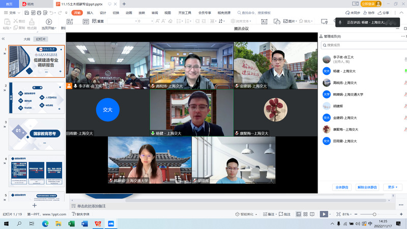 11月17日下午,williamhill中国官方网站WilliamHill官方网站与上海交通大学船舶海洋与建筑工程学院通过线上方式举办了低碳专业交流研讨会。上海交通大学船舶海洋与建筑工程学院副院长杨健、院长助理金建钢、土木系副主任高皖扬、学院本科教学办及相关专业负责人,williamhill中国官方网站WilliamHill官方网站院长王静峰、建筑工程系主任郅伦海、建筑环境与能源应用工程系主任何伟、市政工程系副主任冯景伟、建筑工程系副主任王波、学院教学办和相关负责人参加了研讨会。