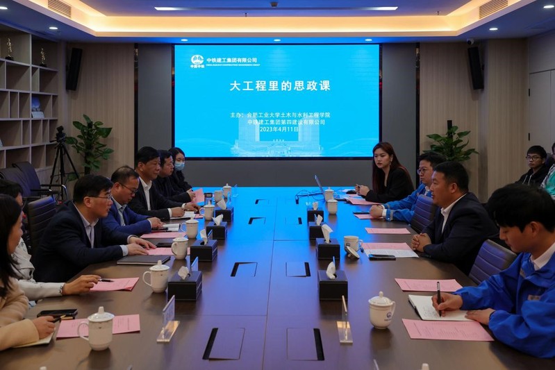活动过程中,中铁建工集团安徽分公司总经理黄志对王静峰院长一行表示热烈欢迎,并简要介绍了公司基本业务情况和人才队伍建设情况。座谈会上,双方围绕学院人才培养模式与目标和中铁建工在行业中优势资源的结合进行了深入探讨,期待双方在实践教学、科研技术交流等方面开展深度合作,为建筑业高质量发展贡献力量。随后,项目总工就钢桁架屋盖提升技术进行了视频分析讲解,并与学生分享了建筑行业中的职业生涯规划与发展,希望同学们珍惜机遇、勤奋学习,立志做有理想、敢担当、能吃苦、肯奋斗的新时代好青年。