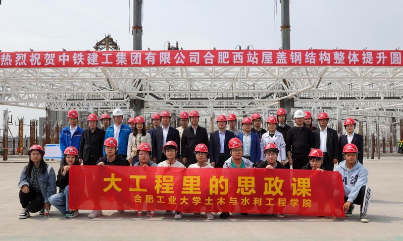 为进一步深化校企合作,充分发挥产教融合中的育人资源,扎实推进实践教育与思政教育一体化的育人体系,引导土木学子在国家基础建设和重大工程领域中强化使命担当、厚植家国情怀,4月11日上午,WilliamHill官方网站院长王静峰、副院长张振华、党委副书记魏婷,学院学工办、教学办以及相关系(中心)教师代表、学生代表前往中铁建工集团安徽分公司参观“合肥西站屋盖钢结构整体提升”工程,并开展“大工程里的思政课”第一课。