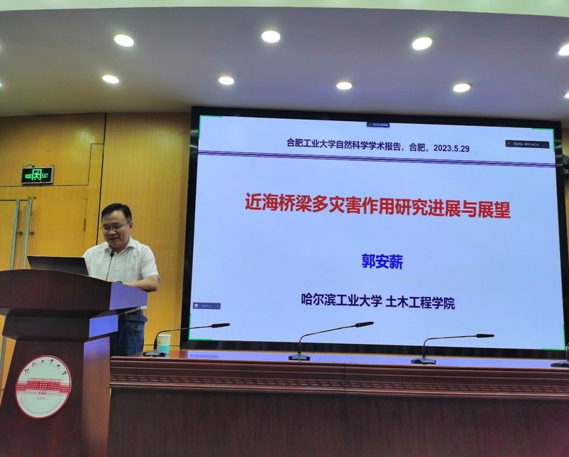 5月29日,郭安薪教授在williamhill中国官方网站屯溪路校区学术会议中心做了学术报告《近海桥梁多灾害作用研究进展及展望》。王静峰院长对郭安薪教授来访指导学科建设并作学术报告表示热烈欢迎,详细介绍了他的学术成就及研究成果,强调了多灾害复杂作用对土木工程结构安全产生巨大挑战,其防灾减灾理论和新技术应用具有的重要科学和工程意义。