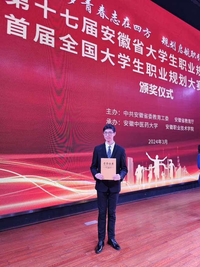 313日至14日,由安徽省委教育工委、省教育厅主办的第十七届安徽省大学生职业规划大赛暨首届全国大学生职业规划大赛安徽赛区决赛圆满落幕。经过激烈角逐,williamhill官网2021级智能建造专业本科生许晋嘉最终荣获一等奖,总成绩排名第一!