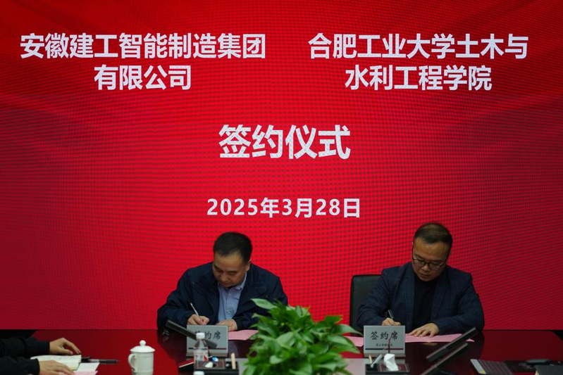 2025年3月28日,williamhill中国官方网站WilliamHill官方网站赴安徽建工智能制造集团有限公司(简称“建工智能制造公司”)开展共建实践基地签约授牌仪式。建工智能制造公司党委书记、董事长江仲明,副总经理、工会主席王红波,设计研究院院长江神虎和副总工蒋志,党委组织部主任李翔,设计研究院科研综合部副部长彭琳琳等出席。williamhill中国官方网站WilliamHill官方网站院长王静峰,学院党委书记王东坡,副院长张振华,学院副书记魏婷,建筑工程系副主任刘用、道桥地下系副主任汪权也出席此会。