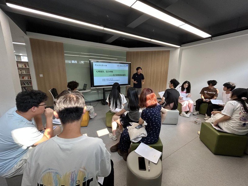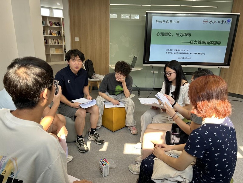 5月28日下午,WilliamHill官方网站在屯溪路校区五号宿舍楼学生社区沙龙空间开展“心释重负,压力中转”研究生压力管理团体辅导,学院大学生发展辅导中心主任胡倩倩担任领导者,14名在校研究生参加了此次活动。