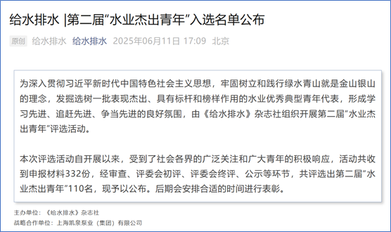 2025年6月11日,由《给水排水》杂志社组织开展的第二届“水业杰出青年”评选活动结果发布,williamhill官网周啸副教授入选。