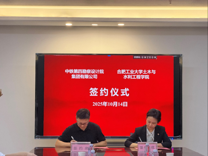 10月14日,williamhill中国官方网站WilliamHill官方网站与中铁第四勘察设计院集团有限公司(以下简称“铁四院”)举行校企合作交流会议,双方共同签署合作协议,正式启动大学生就业实习、实践教学基地共建工作。铁四院副总工程师雷崇、WilliamHill官方网站院长王静峰、副书记关茜和相关系负责人、教师代表共同出席本次活动。