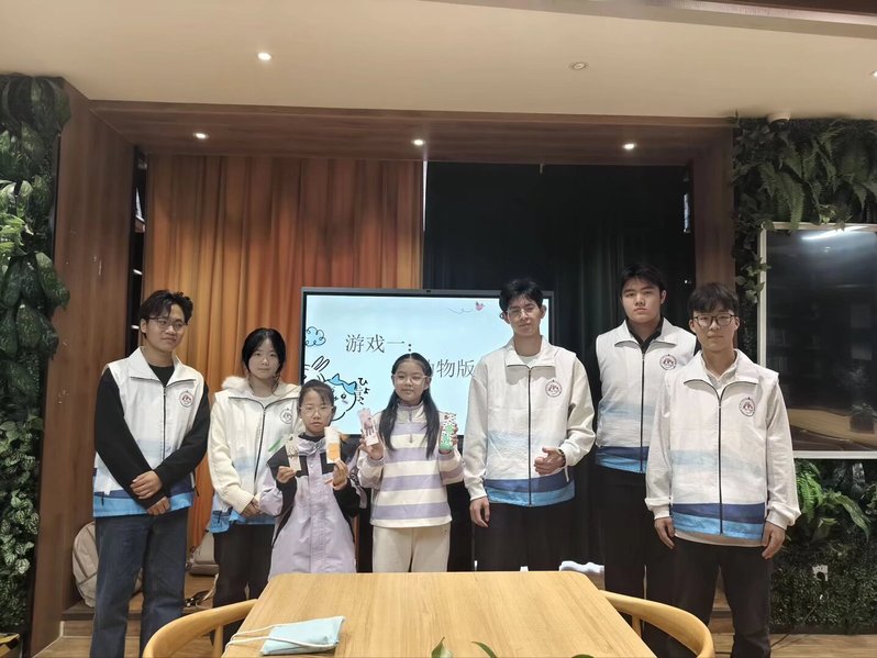 活动伊始,志愿者将绘本画面精心编排进PPT,通过互动提问引导孩子们沉浸于故事情节之中小朋友们不仅听得津津有味,更在思考与问答中锻炼了观察与逻辑能力。“动物版你划我猜”游戏将现场气氛推向高潮。志愿者们鼓励每位小朋友上台模仿动物,由台下伙伴竞猜。孩子们踊跃参与,现场笑声不断。