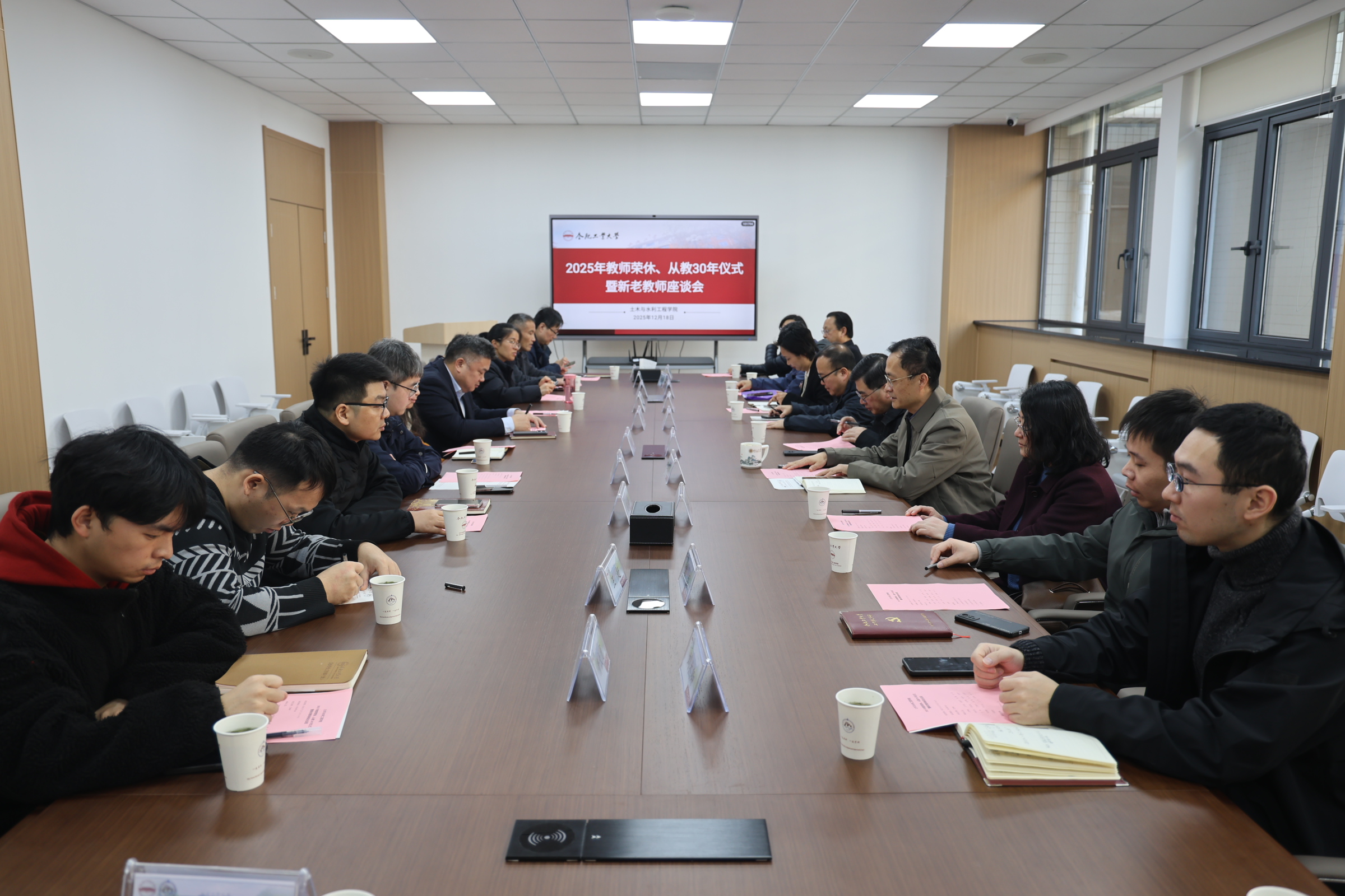 为弘扬尊师重教传统,致敬深耕杏坛的教育工作者,传承学院优良师风学风,12月18日,WilliamHill官方网站在纬地楼506会议室隆重举办2025年教师荣休、从教30年仪式暨新老教师座谈会。会议由学院党委书记王东坡主持,学院领导班子、退休教师、从教30年教师、新入职青年教师、各系教师代表参加。