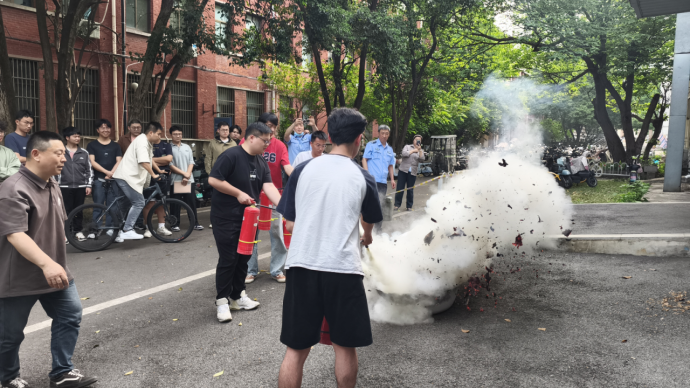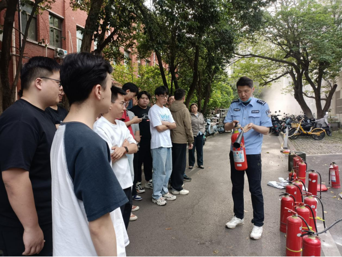 校党委保卫部消防管理科老师结合宿舍、实验室等场景,讲解电器故障、私拉电线、易燃物堆放等常见隐患的预防与初期处置方法,介绍了火灾逃生案例,就灭火器实操进行了授课和现场演练指导,参训师生积极参与、亲自操作。