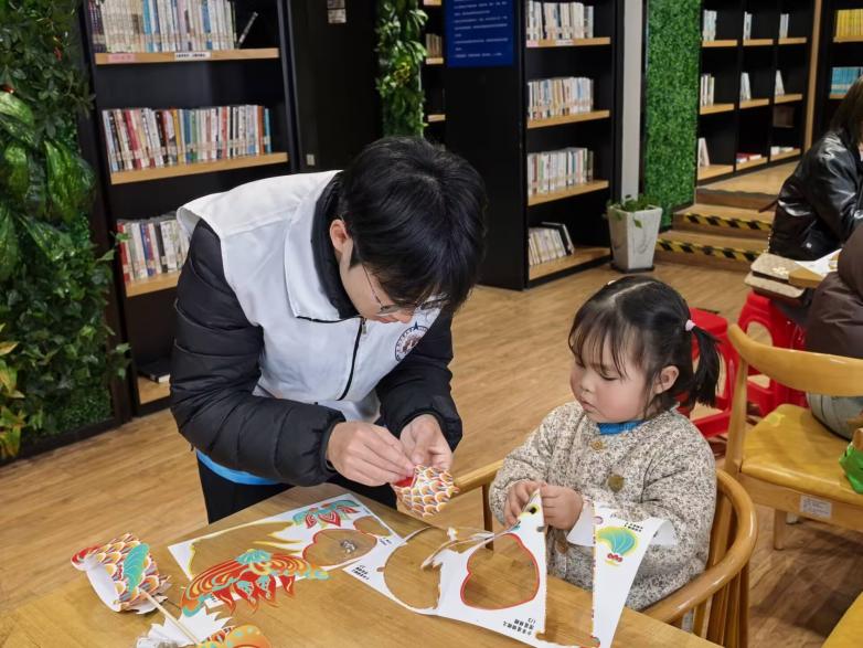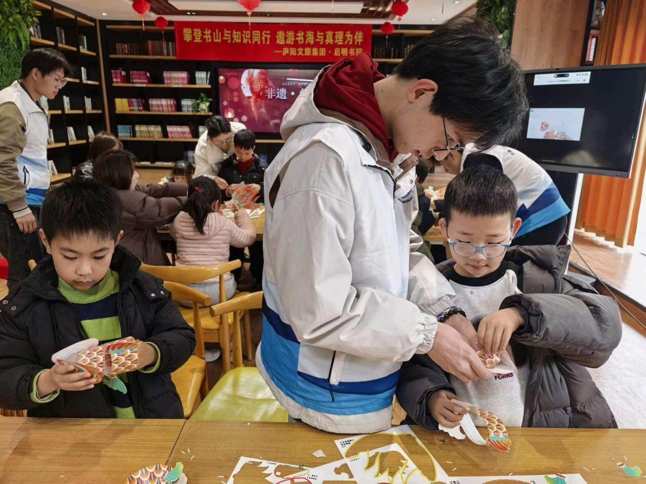 活动伊始,志愿者们以生动的讲解带领孩子们走进鱼灯世界,讲述鱼灯承载的美好寓意与文化故事。随后,志愿者们手把手指导孩子们一步步完成鱼灯制作从勾勒鱼身轮廓,到粘贴彩色鳞片;从组装灯架到固定灵动鱼尾。孩子们专注学习、细心操作,在剪裁、拼贴、组装中体悟传统手工艺的巧思与温度。一盏盏色彩斑斓的鱼灯在孩子们手中逐渐成形,映衬着张张笑脸,点亮了整个活动现场。孩子们兴致勃勃地举起自己的作品互相展示,欢声笑语洋溢其间,成为春日里最温暖的风景。